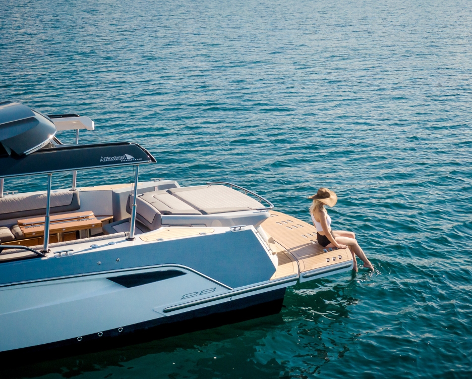 The underfloor motor is particularly suitable for those who want a clear stern. The motor is located rotatably under the hull, guarantees extremely high maneuverability and frees up the rear of the boat (for example, for bathing platforms). This means that there is no interference with the boat’s design language. A real win-win situation.